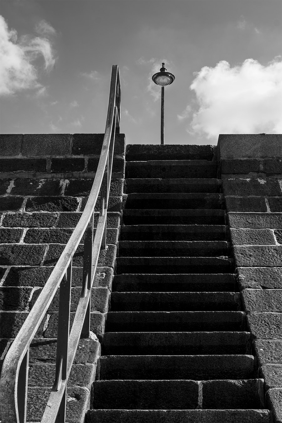 Le négatif du réverbère, son ombre sur le mur qui le porte et l’éclaire – Noir et blanc poétique